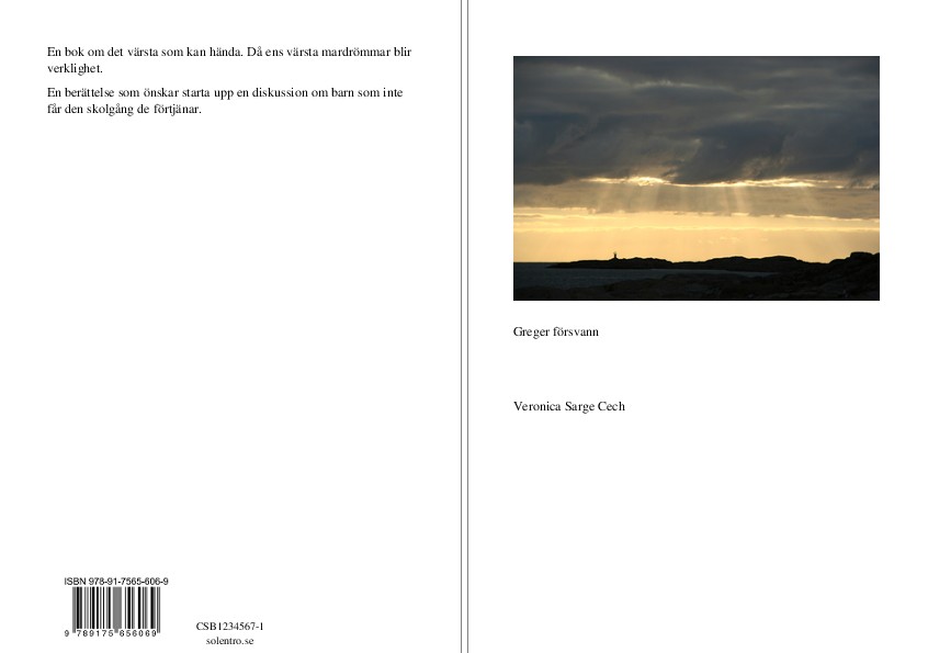 Greger har försvunnit. Men varför? I den här berättelsen får vi följa Gregers mammas resa innan han försvann och efteråt. En liten bok om hur en stor sorg kan drabba en människa och en familj.